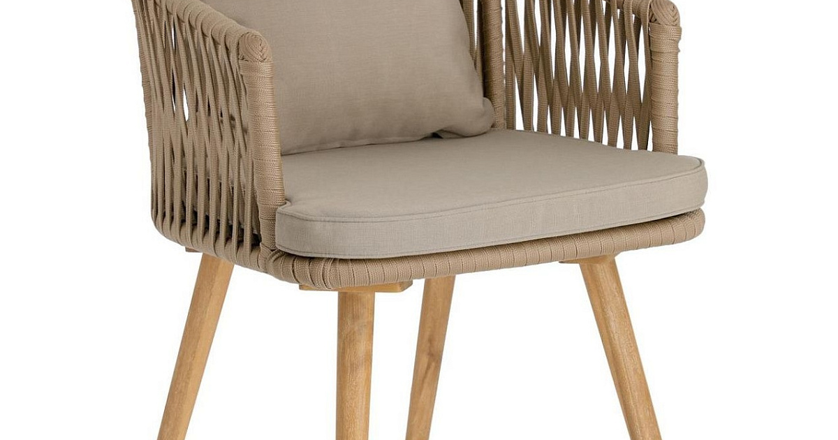 Стул Hemilce с бежевой веревкой от фабрики La Forma – наслаждайтесь видом природы с любимой террасы комфортно и безмятежно. Стул Hemilc очарователен во всех смыслах. Его удобство видно невооруженным взглядом в подушках, высоких подлокотниках, глубоком сиденье. Дизайн элегантный и современный. А возможность использовать его на открытом воздухе – настоящий подарок для тех, кто любит проводить время с комфортом на своей террасе. Стул создан из древесины акации, которая покрыта прозрачным лаком для защиты от солнца и влаги. Каркас сборный, состоит из опоры на четырех круглых ножках и сиденья с дугообразной спинкой. Ширина подлокотников – 3 см. На ножках есть пластичные наконечники, которые улучшают устойчивость на неровном покрытии. Сиденье оплетено бежевой веревкой (100% полиэстер) и дополнено двумя подушками толщиной по 5 см. Наполнитель подушек – синтетическая пена плотностью 20 кг/м3. Чехлы съемные. Допустимая весовая нагрузка на стул – 130 кг. Высота ножек – 40 см. Вес изделия – 6,2 кг. Изделие поставляется в разобранном виде. Для сборки в комплектацию включены инструкция и крепеж. Стул рекомендуется использовать под навесом.
