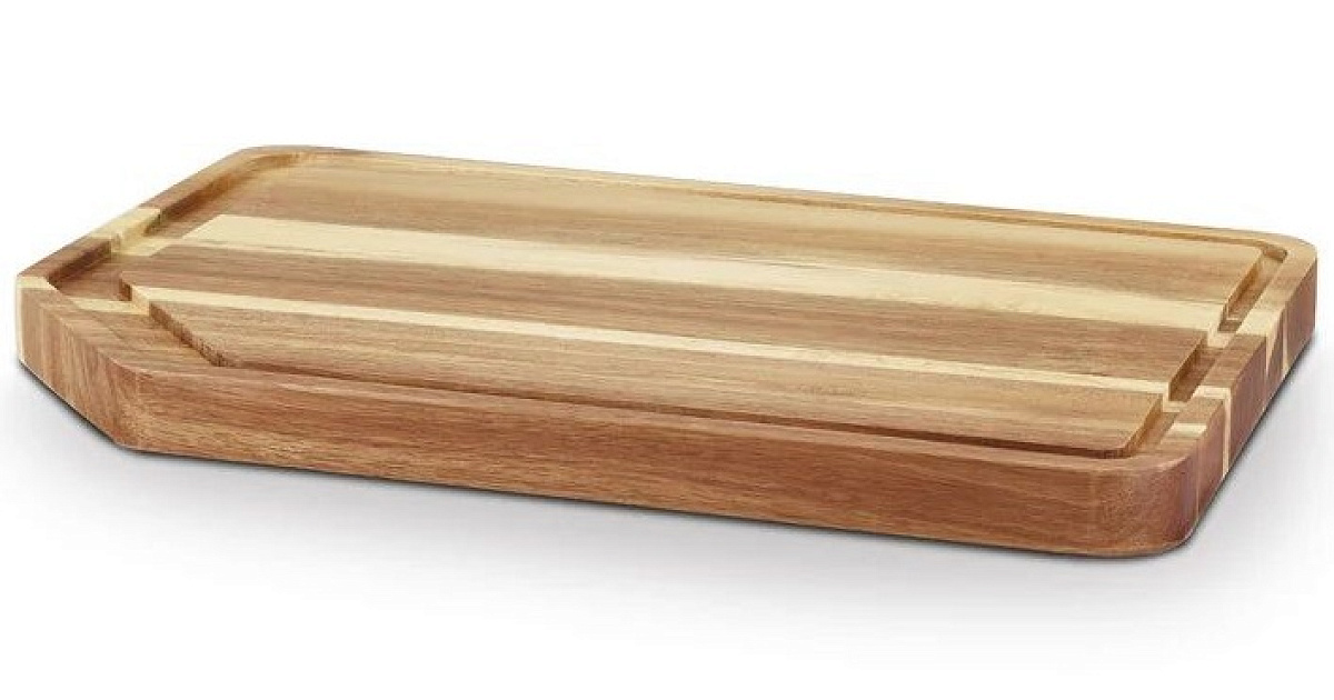 Большое и глубокое углубление для сока снижает риск стекания сока с доски.