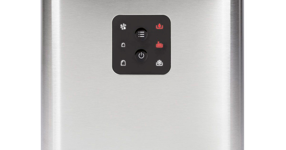 Компактный льдогенератор с корпусом из нержавеющей стали.