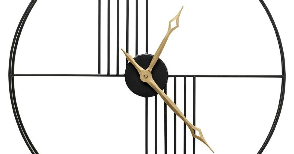 Законченная форма: золотые стрелки создают эстетический контраст с минималистичным черным каркасом.