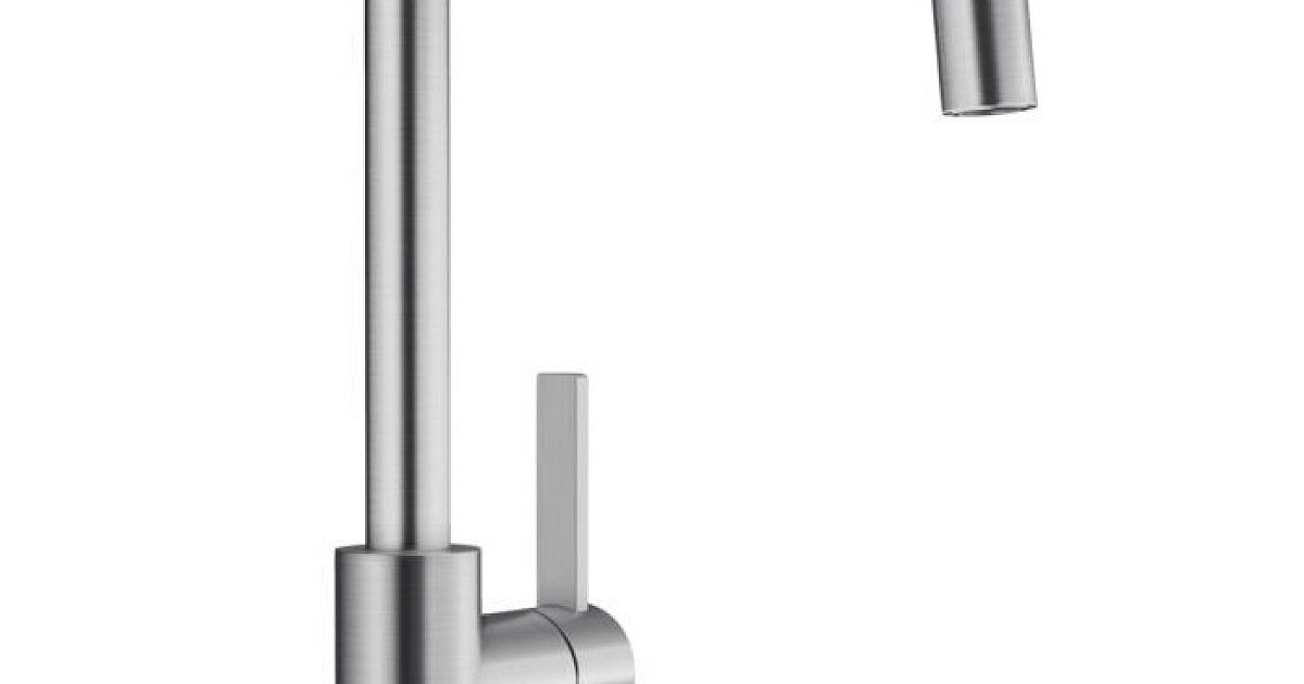 Надежный смеситель из цельной матовой нержавеющей стали.