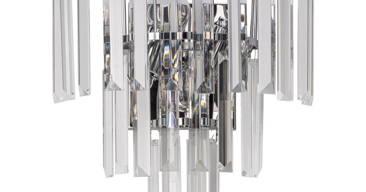 Бра декорировано прозрачным хрустальным стеклом вытянутой формы.