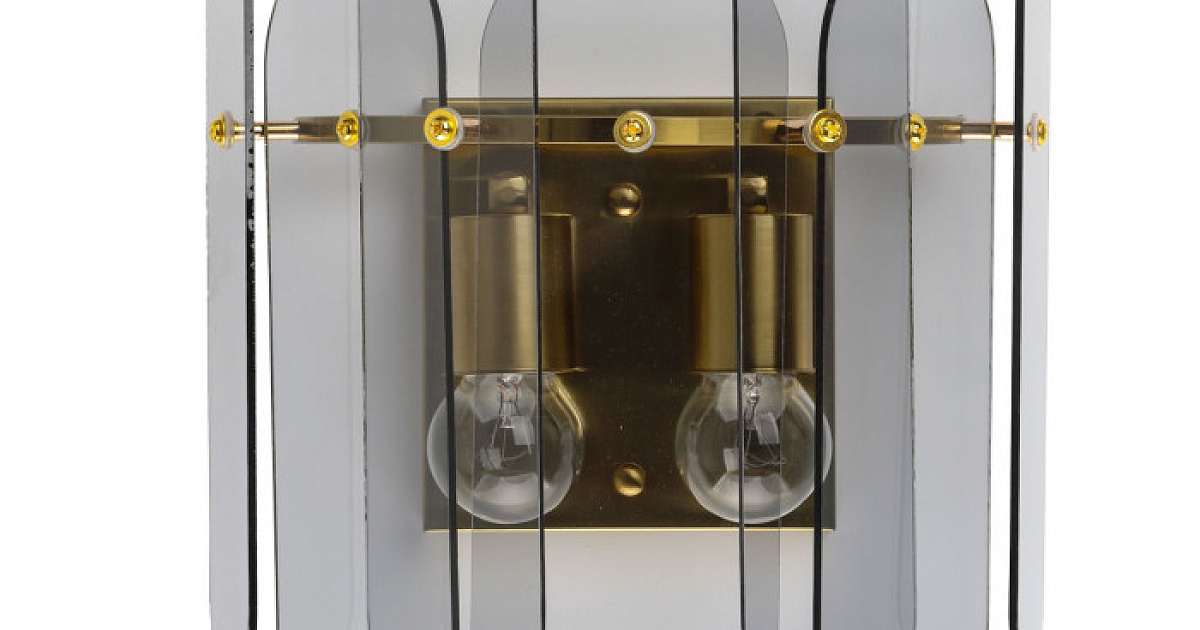 Светильник декорирован стеклом овальной формы, гальванизированным в дымчатый цвет.