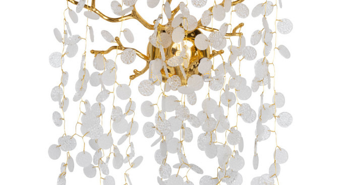 Основание настенного бра выполнено по технологии художественного литья из сплава алюминия с цинком и гальванизировано в цвет золота.