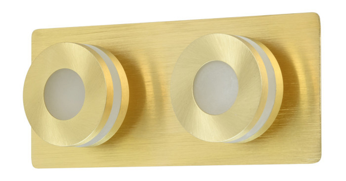 Основание гальванизировано в цвет золота, обработано по технологии браширования. Корпус выполнен из металла, закрыт пластиной из нержавеющей стали. Плафоны: сплав алюминия, гальванизация в цвет золота, браширование. Светодиодные источники света типа COB закрыты рассеивателями из матового акрила.