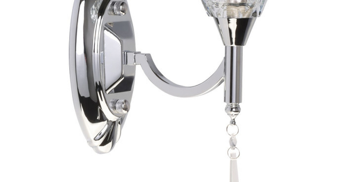 Цвет хрома придает настенному бра современности. Благодаря хрустальному декору бра выглядит роскошно. Плафон из хрусталя создает красивую игру света. Заменяемый источник света удобен в эксплуатации.
