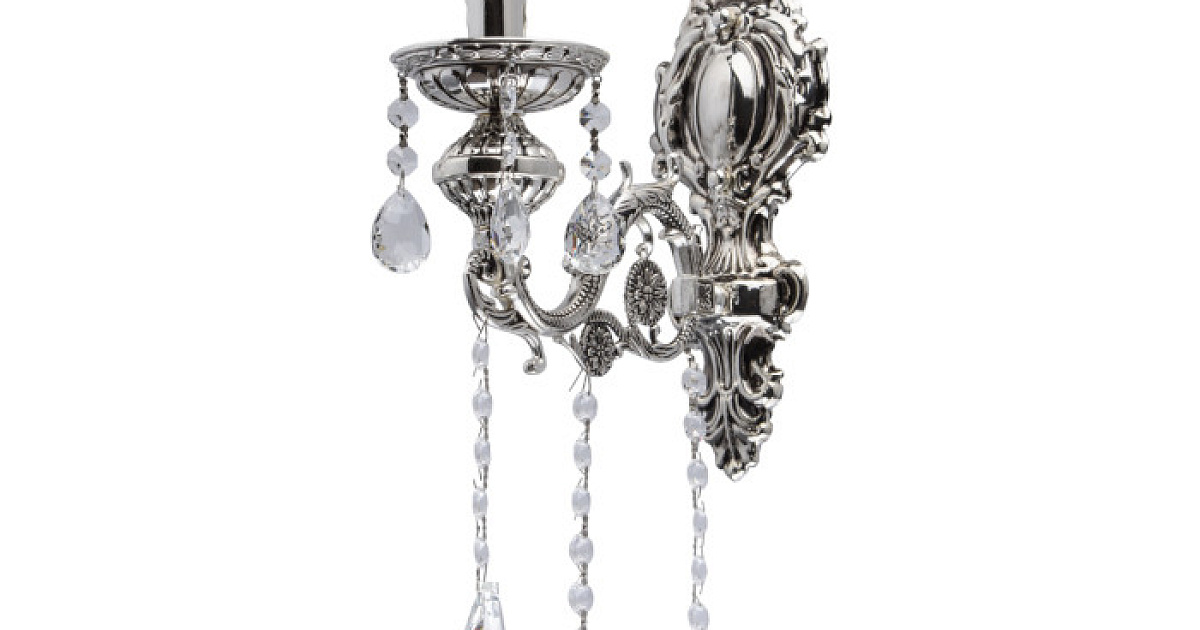 Арматура бра выполнена из комбинации сплавов металлов и гальванизирована в цвет хрома. Основание светильника выполнено из стали по технологии прессования. Рожок и декоративная розетка выполнены из сплава алюминия по технологии художественного литья. Декоративный элемент под розеткой выполнен из стали по технологии токарной обработки с последующим прессованием. Светильник декорирован подвесками из хрусталя формы октагон и миндаль.