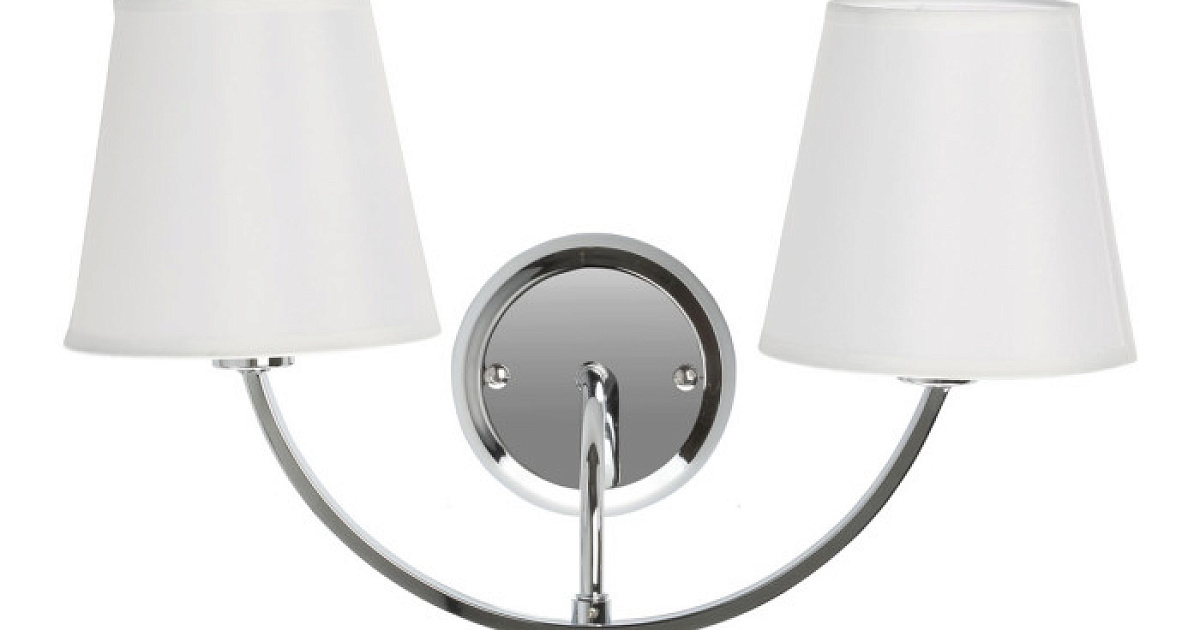 Минимализм декора акцентирует внимание на современном цвете хрома. Оригинальный дизайн двойных рожков привлекает внимание. Текстильные абажуры создают мягкий комфортный свет. Заменяемые источники света удобны в эксплуатации.