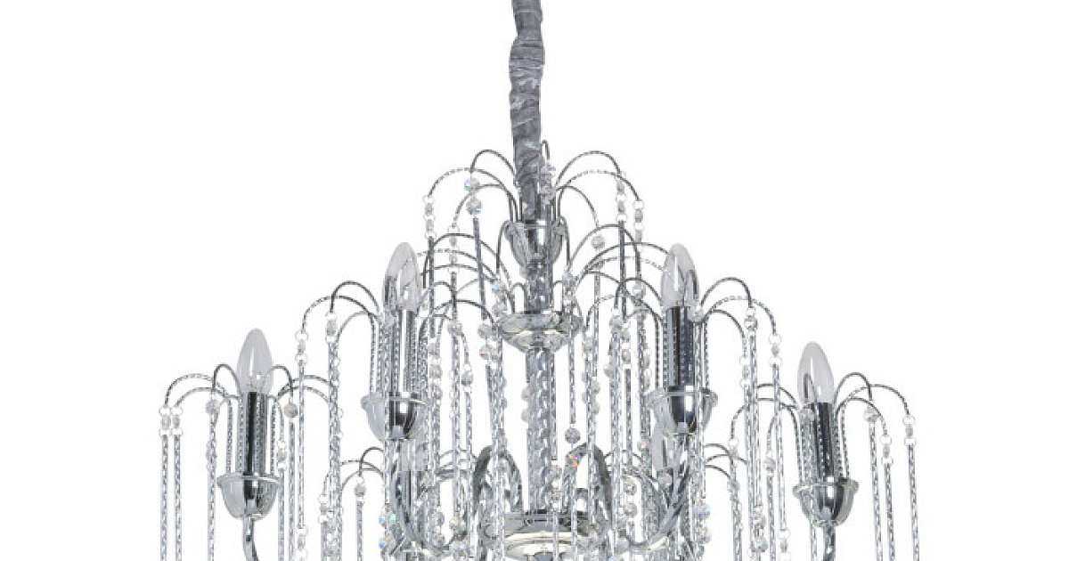 Люстра декорирована прозрачным хрусталем высокого качества и витыми элементами из сплава алюминия с лазерной насечкой.