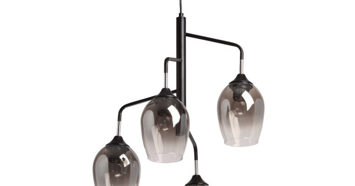 Металлическое основание подвесной люстры окрашено в черный цвет.