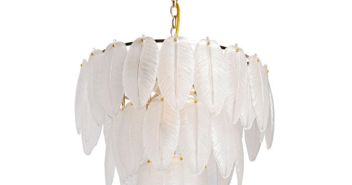 Люстра декорирована матированными стеклянными элементами в форме листьев.