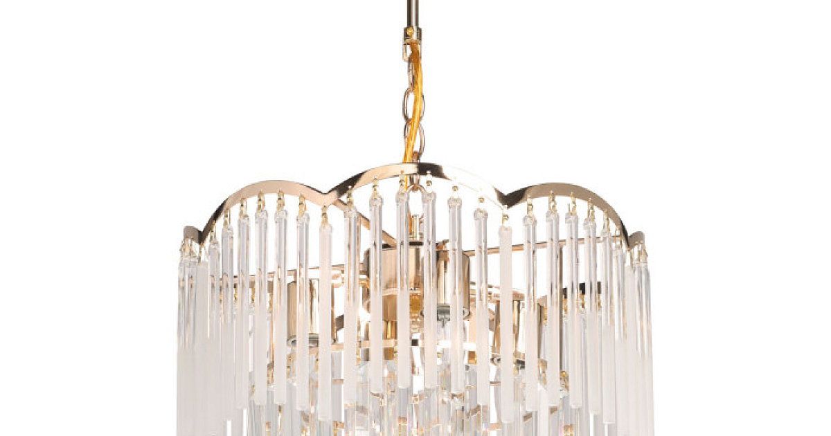 Металлическое основание подвесной люстры гальванизировано в цвет золота.