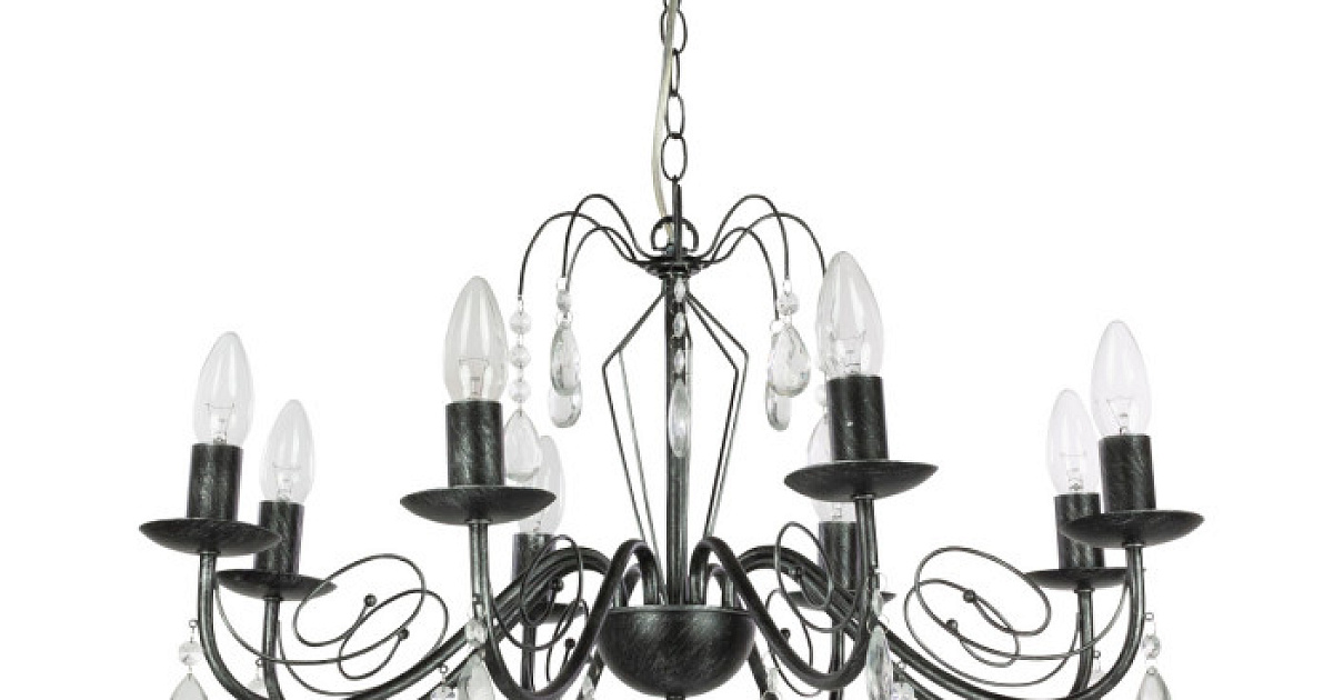 Металлическое основание подвесной люстры окрашено по технологии хай-лайт, где на основной слой черного цвета наносится штрихами декоративный слой цвета серебра.