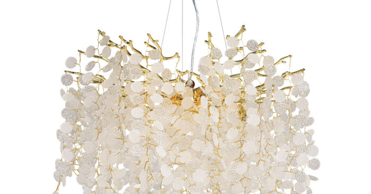 Основание подвесной люстры выполнено по технологии художественного литья из сплава алюминия с цинком и гальванизировано в цвет золота.