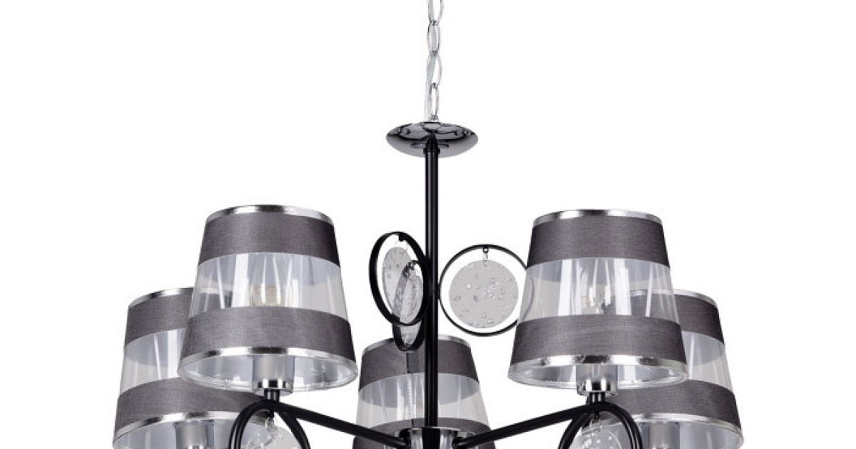 Модное сочетание матовой и глянцевой поверхности, контраст черного и цвета хрома выделяют эту потолочную люстру.