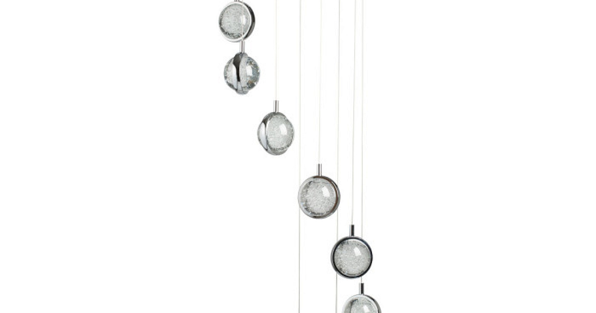 Трендовый цвет хрома. Сфера из прозрачного стекла с пузырьками красиво преломляет свет. Инновационный источник света актуален. Возможность регулировать комфортную высоту. Полная семья решает задачи общего и зонального освещения.