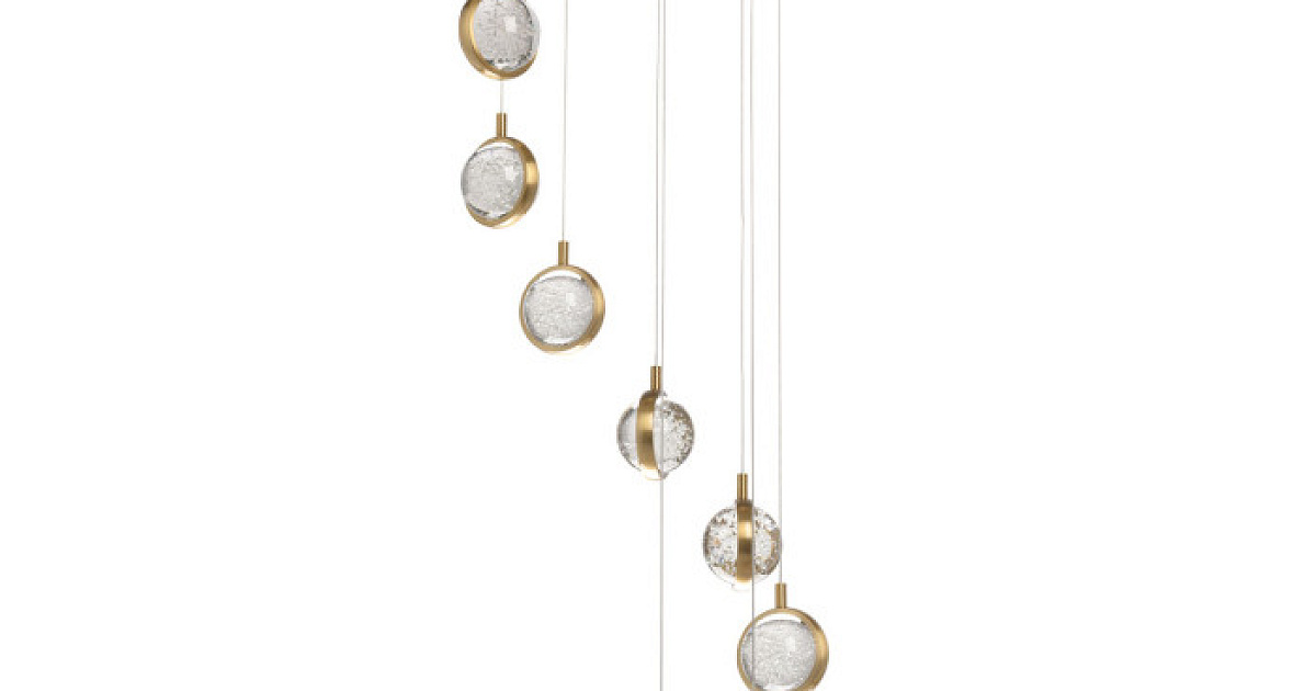Цвет медовой бронзы притягивает к себе внимание. Сфера из прозрачного стекла с пузырьками красиво преломляет свет. Инновационный источник света актуален. Возможность регулировать комфортную высоту. Полная семья решает задачи общего и зонального освещения.