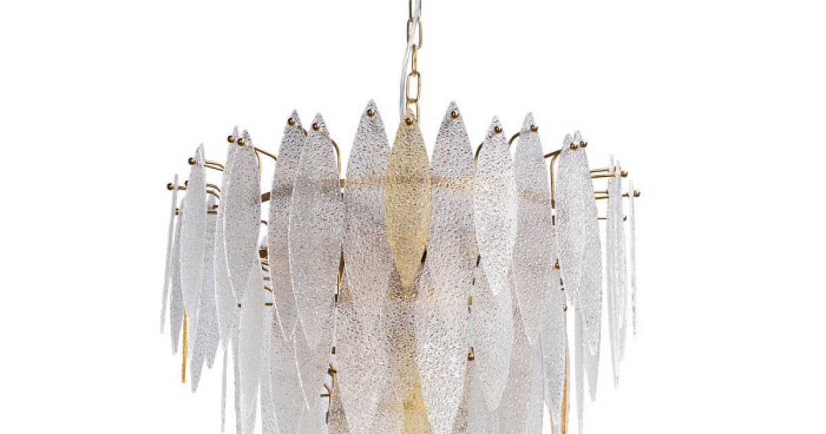 Подвесная люстра привлекает внимание необычным дизайном и гармоничным сочетанием цветов. Актуальный цвет латуни основания дополняет изысканный декор из фактурных стеклянных пластин двух цветов. Фактура вулканического стекла прозрачного и цвета шампань разбивает световой поток на множество ярких бликов, которые создают в комнате романтичную атмосферу. Возможность регулировать комфортную высоту. Заменяемые источники света удобны в эксплуатации.