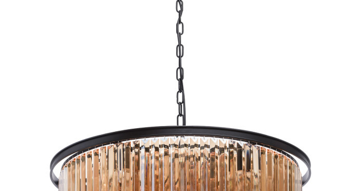 Основание выполнено из металла и окрашено в черный матовый цвет. Декоративные подвески из хрусталя прямоугольной формы, гальванизированного в цвет топаза.
