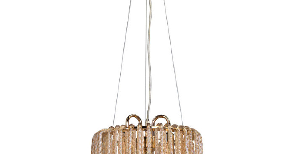 Металлическое основание гальванизировано в цвет золота. Светильник декорирован стеклянными извитыми элементами, гальванизированными в цвет топаз.
