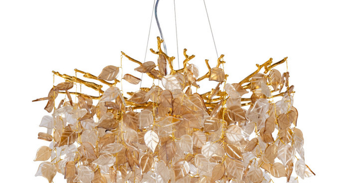 Современный дизайн с природными мотивами. Трендовая флористика, природа в доме. Декор в форме листьев из прозрачного и янтарного стекла придает светильнику индивидуальность. Заменяемые источники света удобны в эксплуатации.