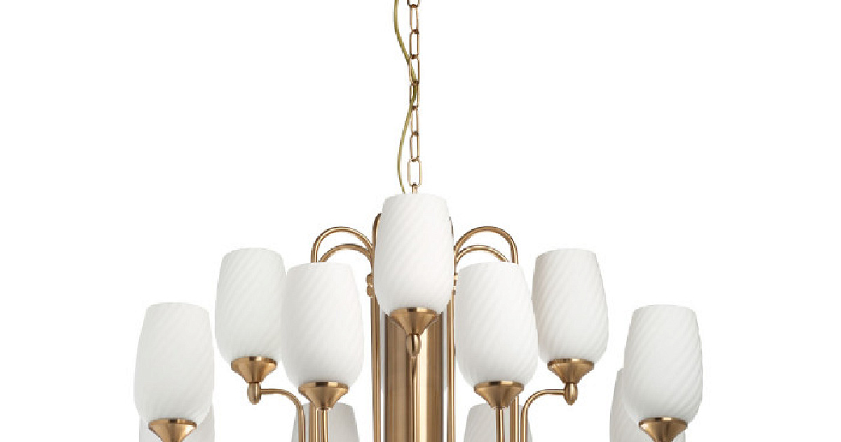 Металлическое основание светильника гальванизировано в цвет бронзы. Стеклянные плафоны молочного цвета с добавлением глушителей прозрачности отлиты в сложную форму, создающую спиралевидный рисунок.
