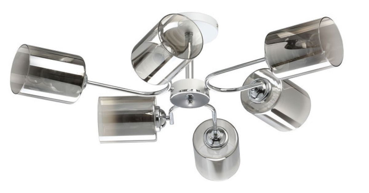 Стеклянные плафоны градиентно гальванизированы в дымчатый цвет, насыщенность цвета уменьшается от места крепления плафона.