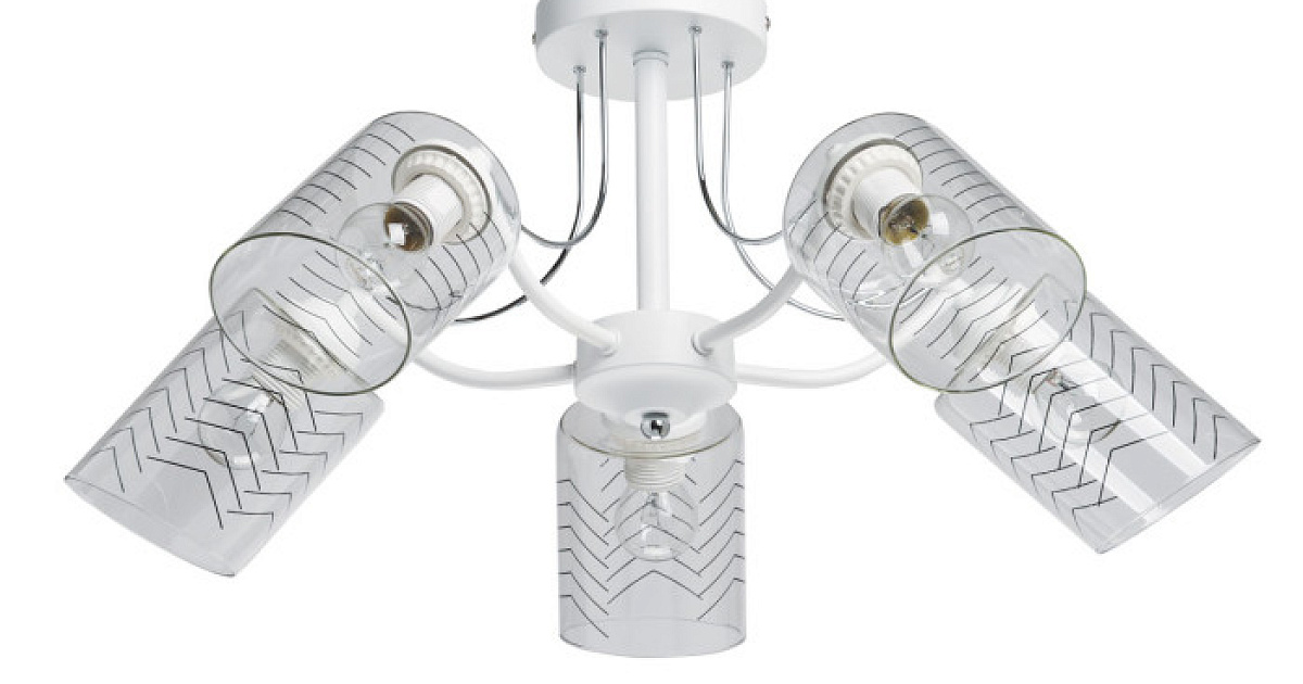 На прозрачные стеклянные плафоны вытянутой формы нанесен геометричный орнамент.