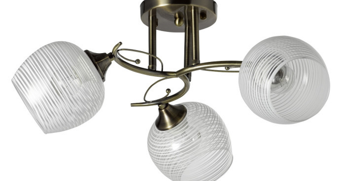 Стеклянные плафоны окрашены белой краской в тонкую полоску.