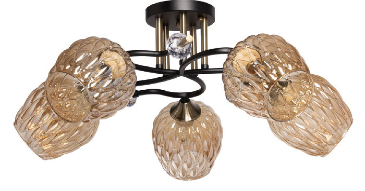 Ячеистая структура стекла плафонов придает люстре изюминку и выделяет его в ряду декоративных светильников.