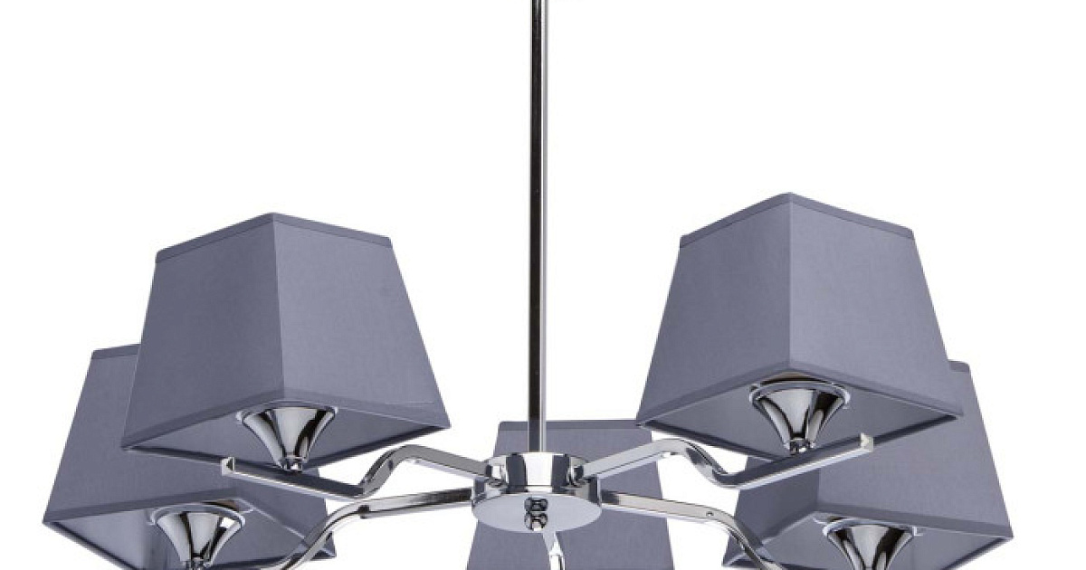 Хромированное металлическое основание дополнено аккуратными текстильными абажурами, выполненными в соответствии с последними модными тенденциями: геометричная форма, трендовый оттенок графит.