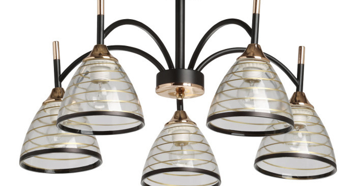 На прозрачные стеклянные плафоны нанесены тонкие полоски цвета золота.