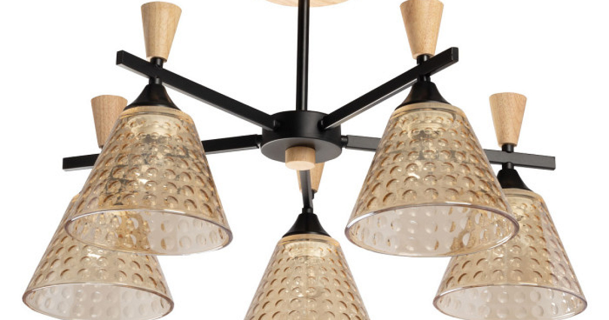 Стеклянные плафоны благородного золотистого цвета красиво рассеивают свет.