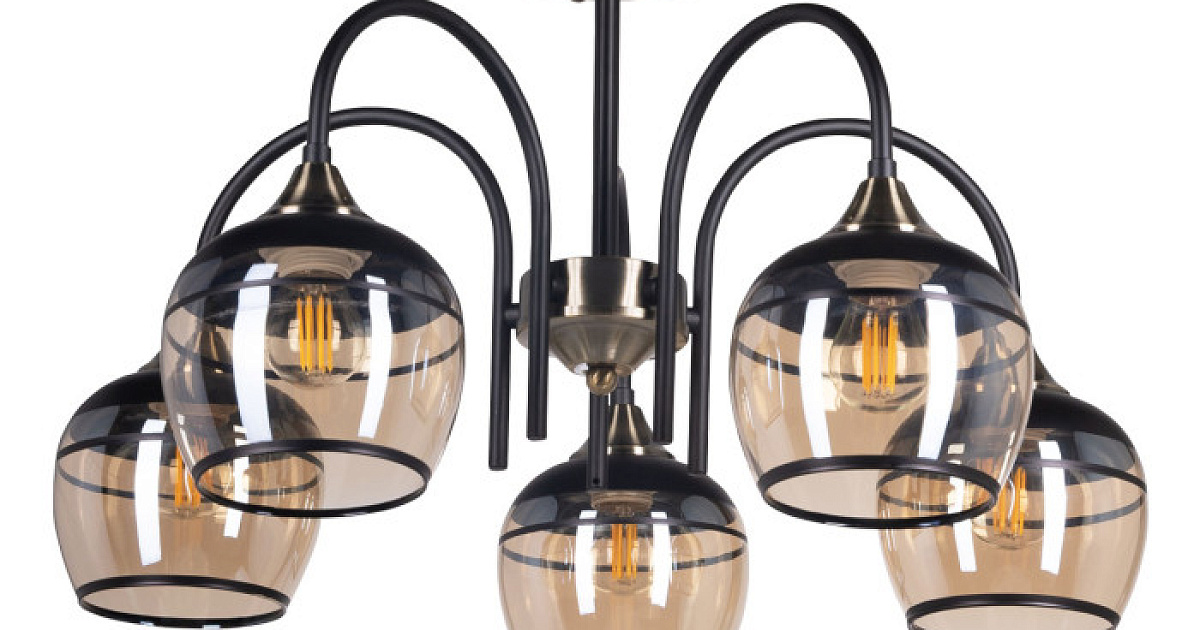 Отдельные элементы основания потолочной люстры гальванизированы в цвет античной бронзы.