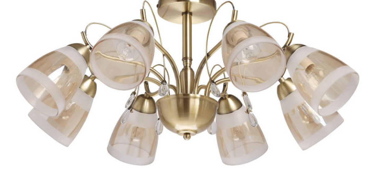 Декор придает потолочной люстре изящества, а хрустальное стекло добавляет декоративности.