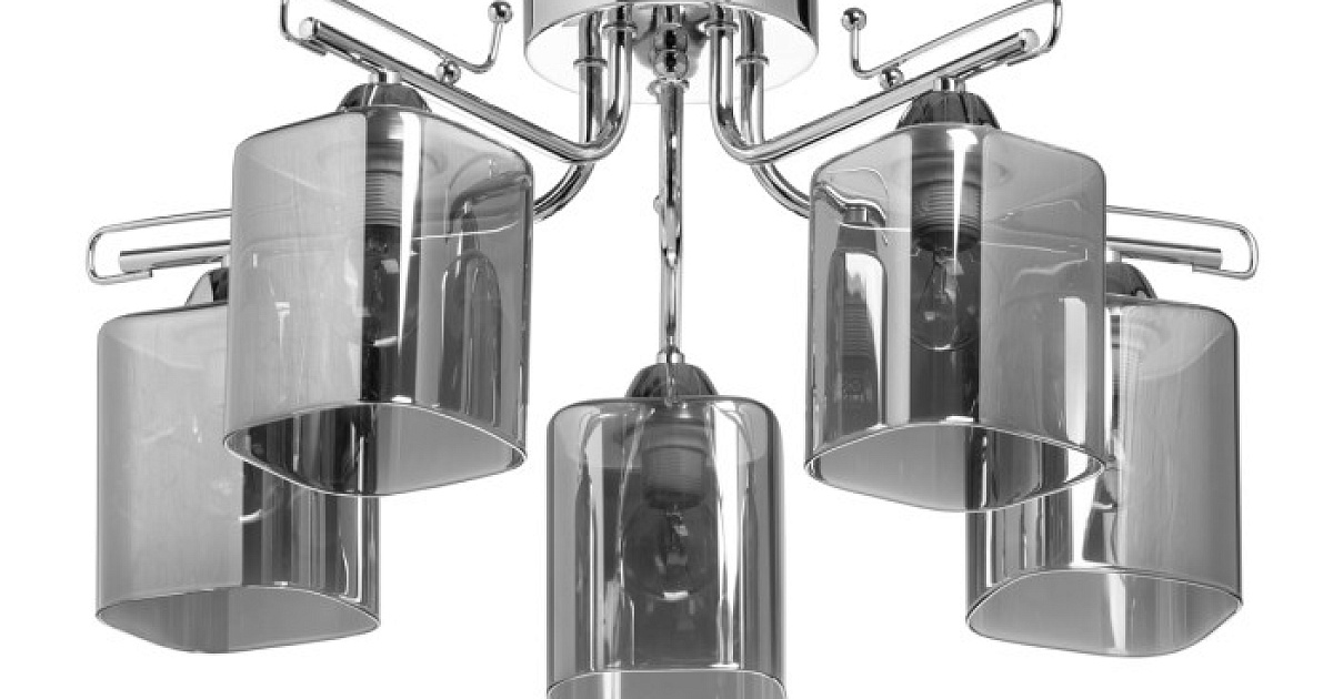 Основание светильника выполнено из металла и гальванизировано в цвет хрома. Стеклянные плафоны гальванизированы в дымчатый цвет.