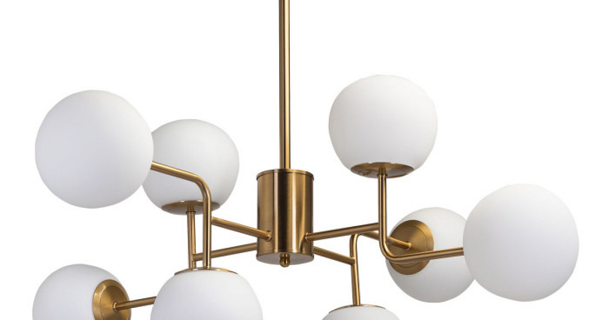 Трендовый цвет латунь актуален для большинства интерьеров. Стеклянные плафоны белого цвета создают мягкое комфортное освещение. Большое количество ламп хорошо осветят пространство комнаты. Дизайн в виде молекулы в тренде. Современная система монтирования плафонов. Заменяемые источники света удобны в эксплуатации.