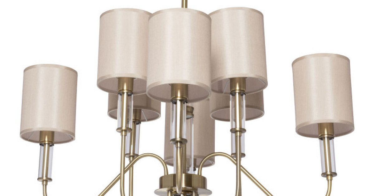 Цвет античной бронзы выглядит с особенной изысканностью и сохраняет свою актуальность. Текстильные абажуры цвета кофе с молоком создают мягкое освещение, внося уют в пространство комнаты. Термостойкий акрил надежно защищает текстиль абажура. Особую эстетику люстре придает декор из прозрачного стекла. Заменяемые источники света удобны в эксплуатации.