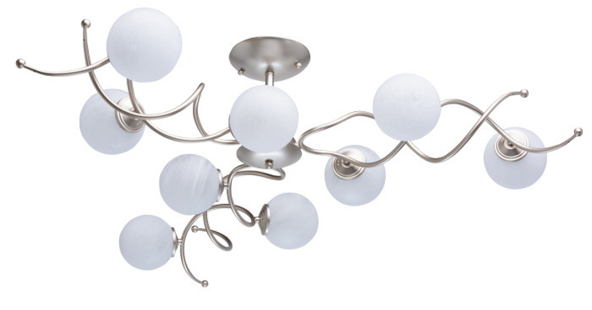 Оригинальный трендовый элегантный дизайн. Большой диаметр и матовые плафоны, направленные в разные стороны, обеспечивают широкий угол светового потока и комфортный мягкий свет. Близкое расположение к потолку дает возможность разместить люстру в помещениях с невысокими потолками Оригинальная витая конструкция цвета перламутрового золота и матовые сферические плафоны делают светильник необычным и очень стильным Большая семья дает возможность комплексного освещения помещений.