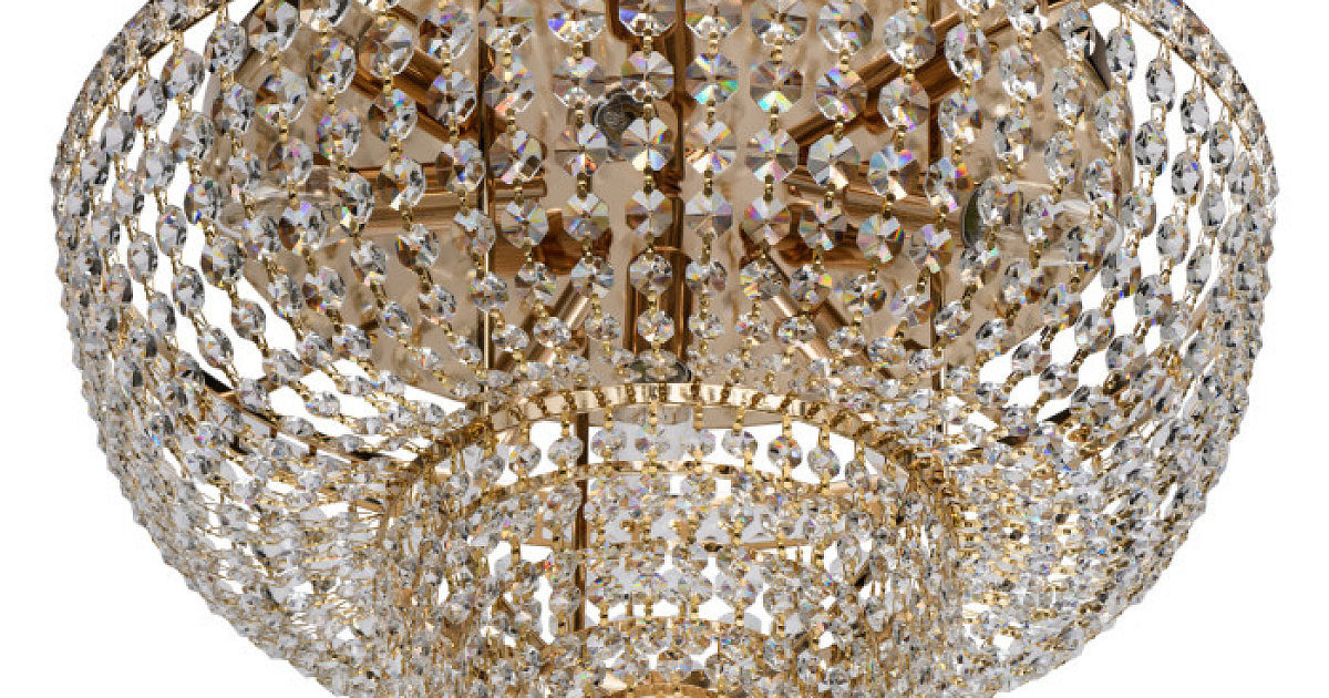 Основание светильника выполнено из металла и гальванизировано в цвет золота. Светильник декорирован прозрачным хрусталем.