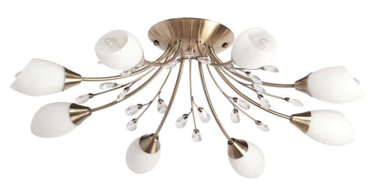 Трендовый дизайн в флористическом стиле. Оригинальная форма плафонов. Высокие параметры освещенности. Качественное исполнение всех элементов. Декор из прозрачного хрусталя.