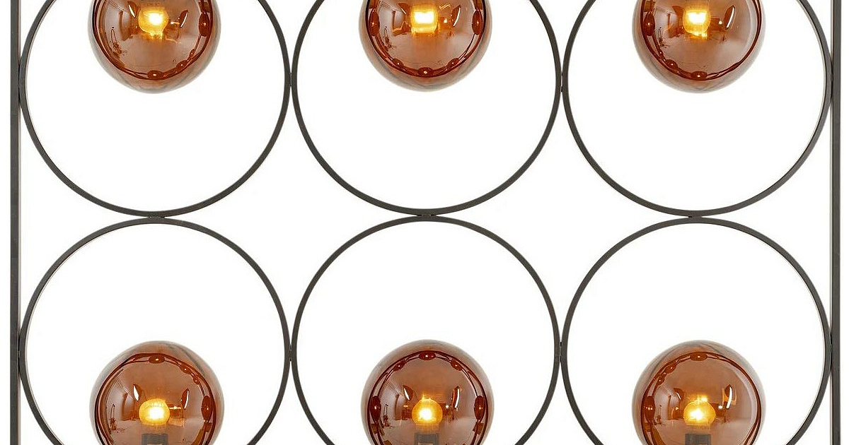 Шесть круглых абажуров коричневого цвета обеспечивают теплое и приятное освещение.