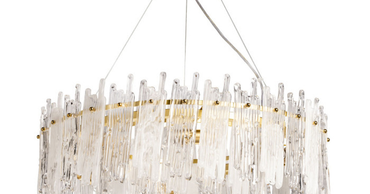Трендовый дизайн подвесной люстры подчеркнут актуальным цветом латуни. Оригинальные стеклянные пластины декора придают люстре неповторимости и индивидуальности. Заменяемые источники света удобны в эксплуатации. Возможность регулировать комфортную высоту.