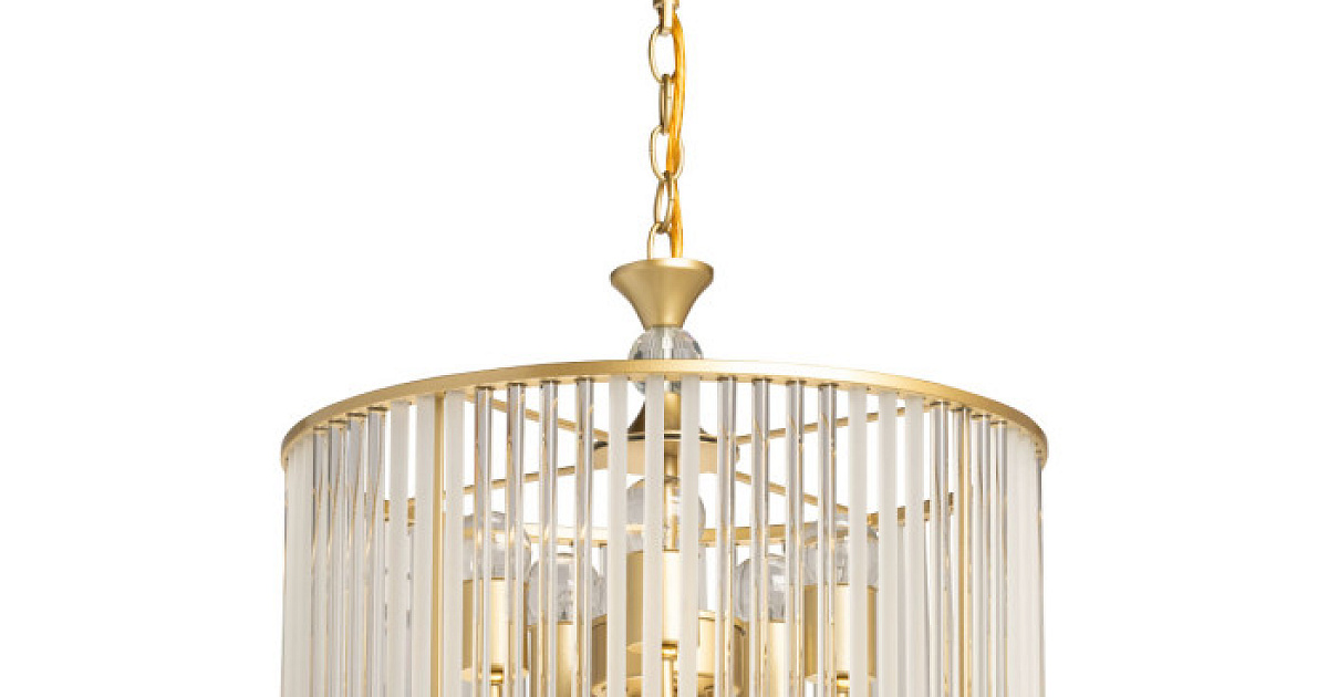 Гальваника в цвет латуни придаёт люстре благородный вид. Стеклянный декор создает уникальную игру света и тени и придает люстре шарм и уникальность. Люстра вносит в интерьер уют и романтичность. Заменяемые источники света удобны в эксплуатации. Возможность регулировать комфортную высоту.