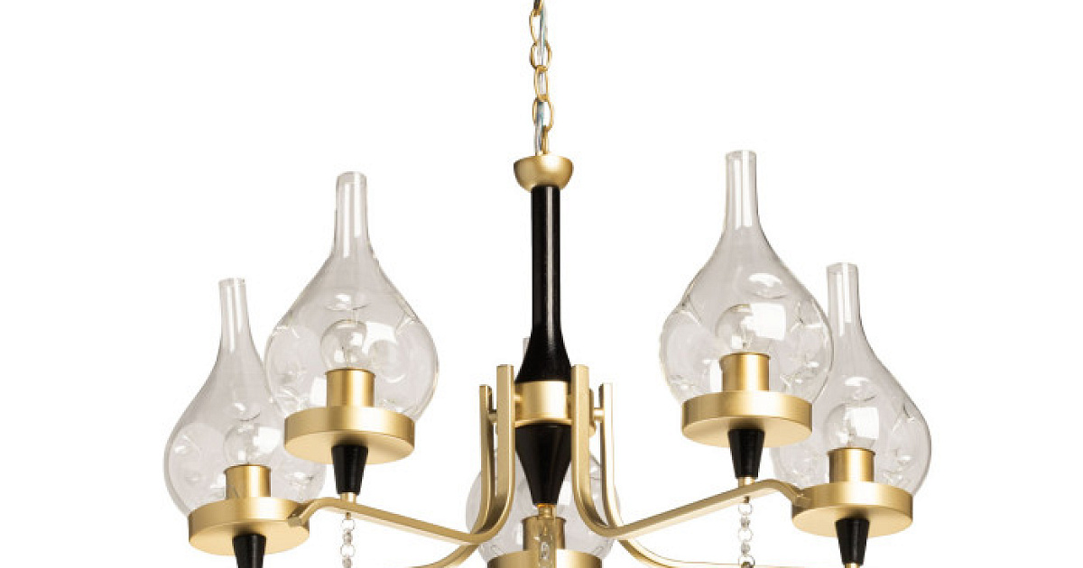Эффектный подвесной светильник подойдет как в классический, так и в современный интерьер. Высоту светильника можно комфортно регулировать. Сочетание черного и золотого цвета основания привлекает к себе внимание. Стеклянные плафоны оригинальной формы придают люстре индивидуальность. Заменяемые источники света удобны в эксплуатации.