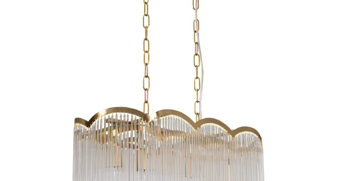 Подвесная люстра представляет собой потрясающий каскад стеклянных трубочек, напоминающих струи воды или льдинки. Воздушный облик люстры подчеркивает металлическое основание насыщенного латунного цвета. Необычный образ подвесной люстры завершается волнистой формой основания в стиле модерн. Возможность регулировать комфортную высоту. Заменяемые источники света удобны в эксплуатации.