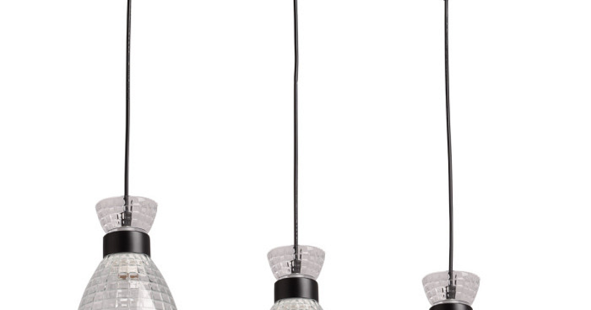 Прозрачные стеклянные плафоны с геометричной фактурой отлиты в сложную форму.
