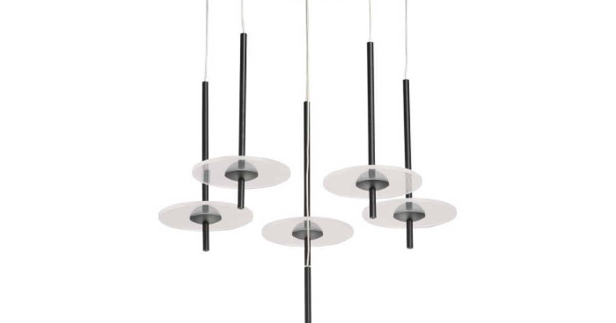 Металлическое основание подвеса обработано по технологии порошкового окрашивания в черный цвет. Плафоны в виде диска выполнены из прозрачного акрила.