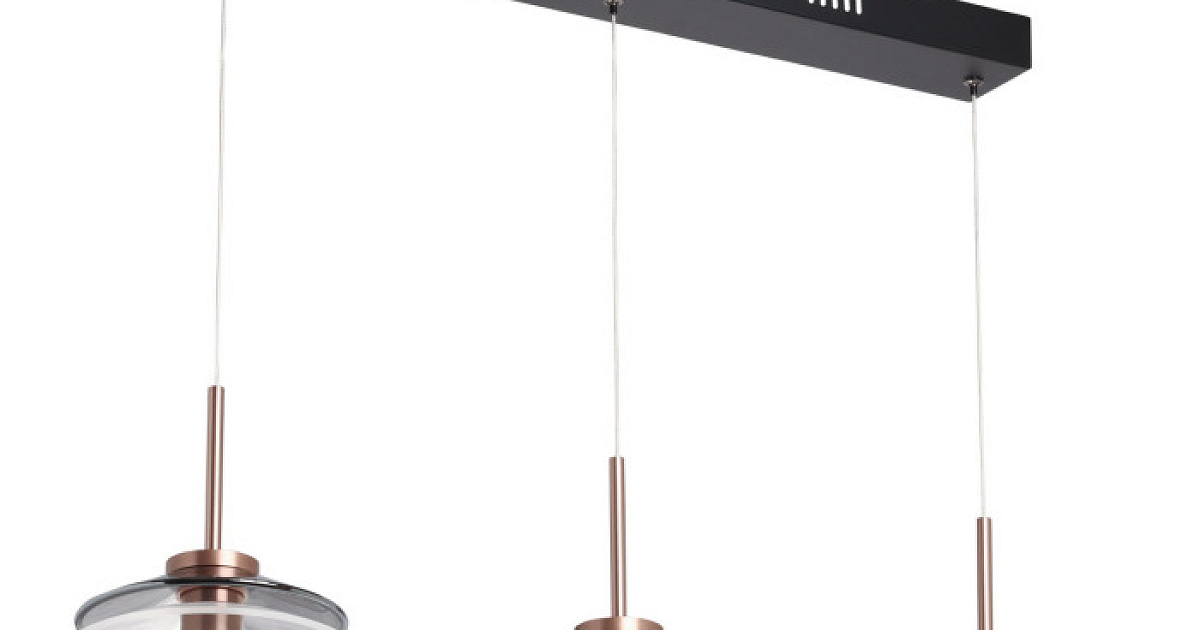 Минималистичный дизайн соответствует современным трендам. Модное сочетание контрастного черного и цвета меди. Стильно оформленный плафон, комбинированный стеклом дымчатого цвета и прозрачным акрилом, создает красивое освещение. Использование сплава алюминия в плафоне позволяет эффективно отводить тепло от светодиодов и продлевает время эксплуатации подвеса. Возможность устанавливать комфортную высоту. Светодиодные источники света безопасны и экономичны.