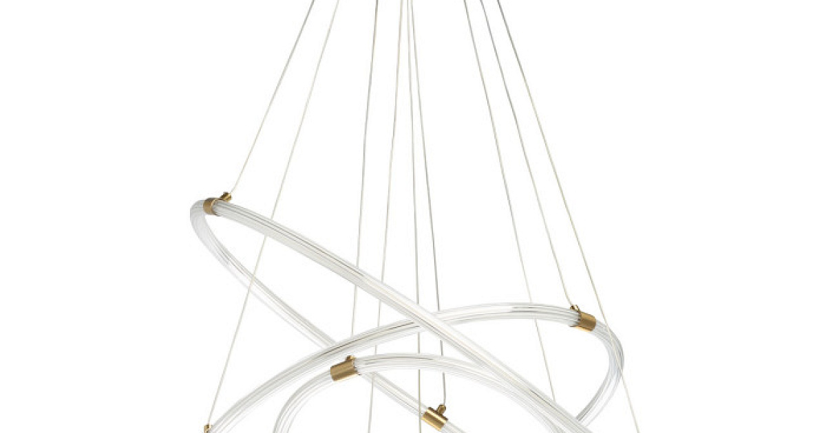 Современная подвесная люстра в стиле хай-тек. Трендовый геометричный дизайн. Благодаря тросам можно менять дизайн светильника, меняя наклон и высоту колец. Три режима цветовой температуры обеспечивают три сценария освещения - теплый свет, холодный свет и дневной свет.